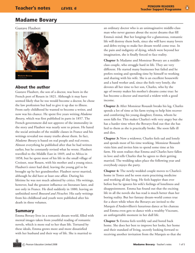 Madame Bovary the novels protagonist. His solicitous mother finds him a wealthy middle-aged wife named Madame Dubuc. Charles Bovary a good-hearted but dull and unambitious doctor with a meagre practice marries Emma a beautiful farm girl raised in a conventAlthough she anticipates marriage as a life of adventure she soon finds that her only excitement derives from the flights of fancy she takes while reading sentimental.